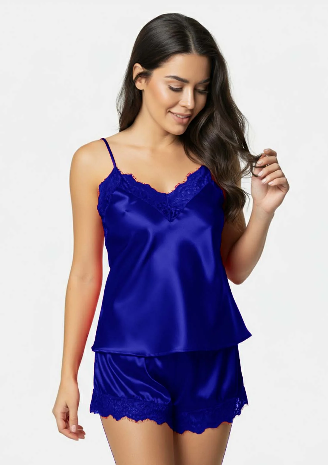 - Lace Detailing: Elegant lace accents on both the camisole and shorts for a feminine and sophisticated look.